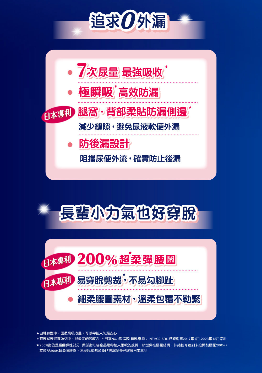 日本專利-腿窩.背部柔貼防漏側邊,減少縫隙,避免尿意軟便外漏